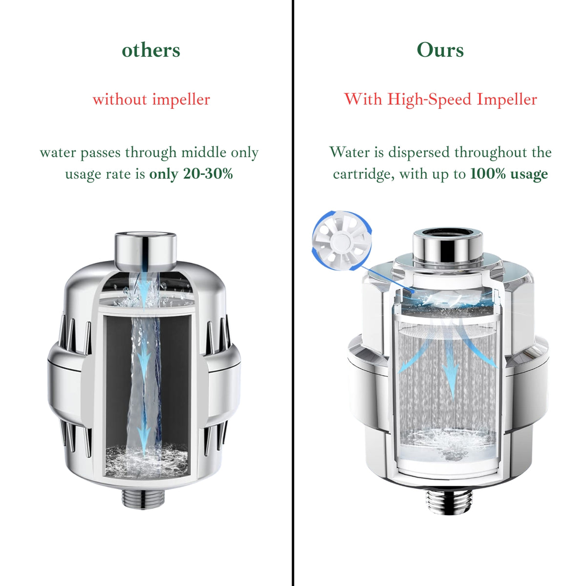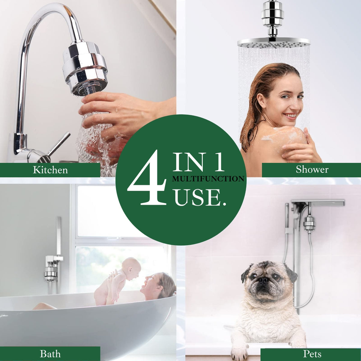 20-stage filtration for maximum removal of chlorine, fluoride, and heavy metals
